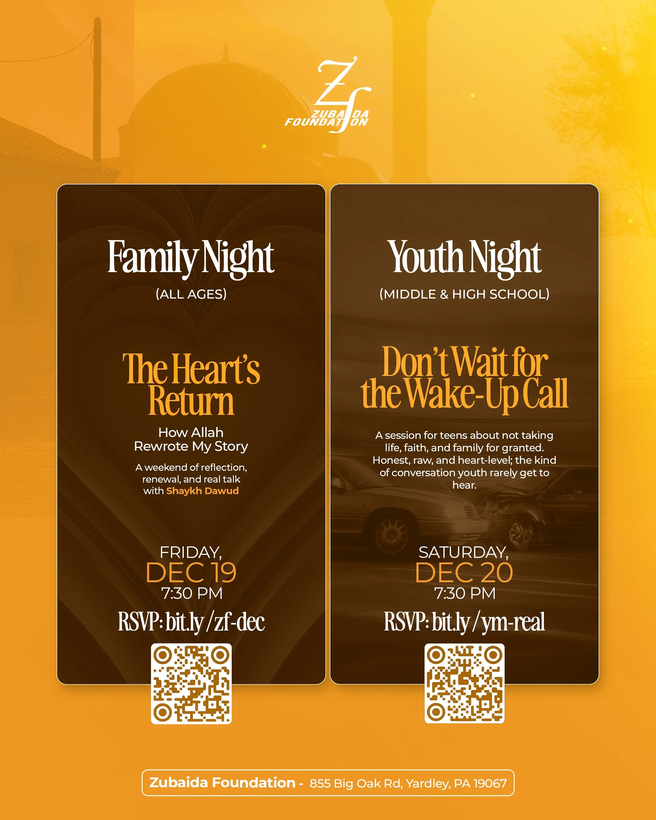 We foster a welcoming environment where individuals can connect deeply with their Creator through congregational prayers, engaging Khutbahs, and spiritually uplifting programs. Our goal is to enrich your worship experience and strengthen your relationship with Allah.